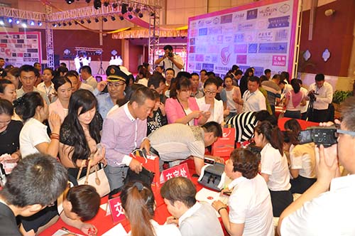 8月6日活動當天,四季青國際服裝城招商發(fā)布會現場人頭攢動、熱鬧非凡,一場以四季青加盟品牌的時尚服裝秀正在精彩上演。主辦方臺上為大家演示全新的020電子商務運營模式,臺下的觀眾邊聽邊記,更有著急的客戶,按耐不住激動的心情,紛紛要求交錢定鋪。工作人員穿梭于客戶之間,一一回答他們提出的問題。